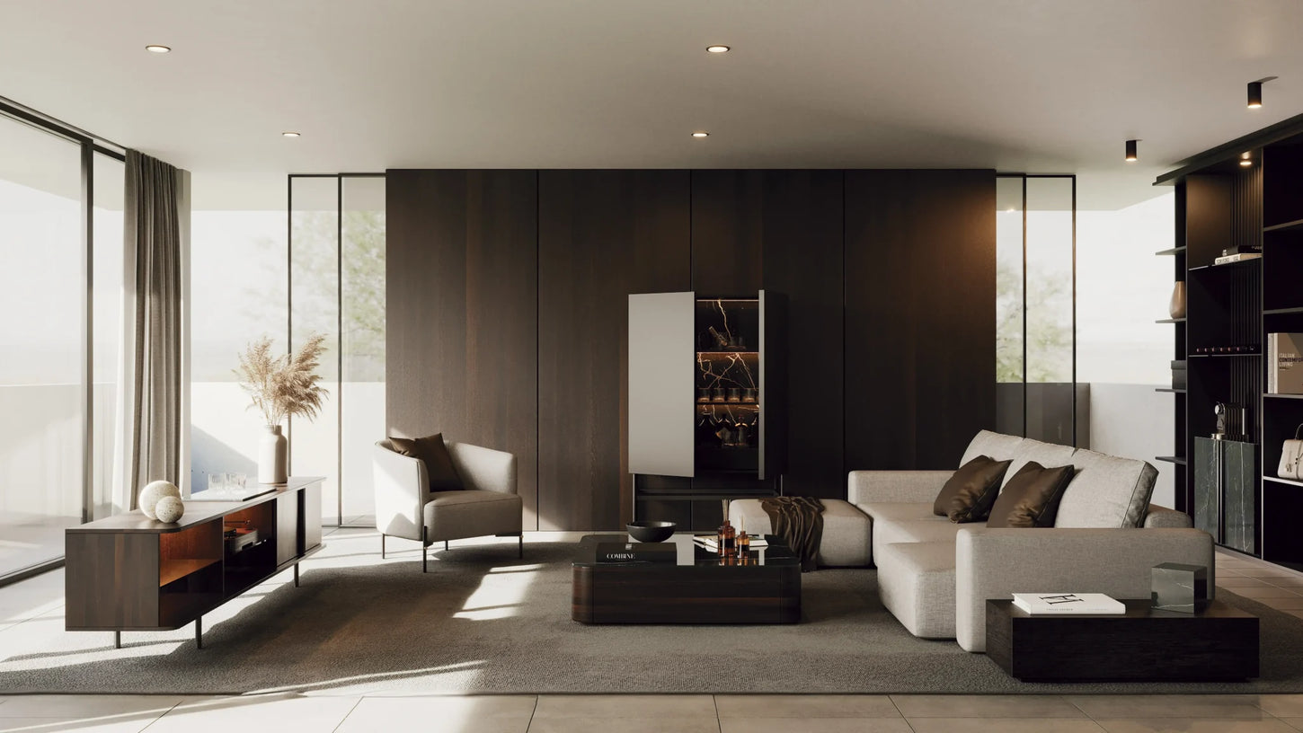 Wood and veneer are sensitive to light and can be affected by prolonged exposure to intense sunlight. During the first 6 to 8 weeks, it is important to keep surfaces free of objects to avoid permanent marks and circles while the product absorbs the surrounding light and its tone equalizes with existing furniture. In addition, it is important to avoid direct exposure to intense sunlight and sources of excessive heat, such as radiators or incandescent lamps, as this can cause discoloration and damage to the wood fibers. Avoid using abrasive or harsh chemical products that may damage the finish.