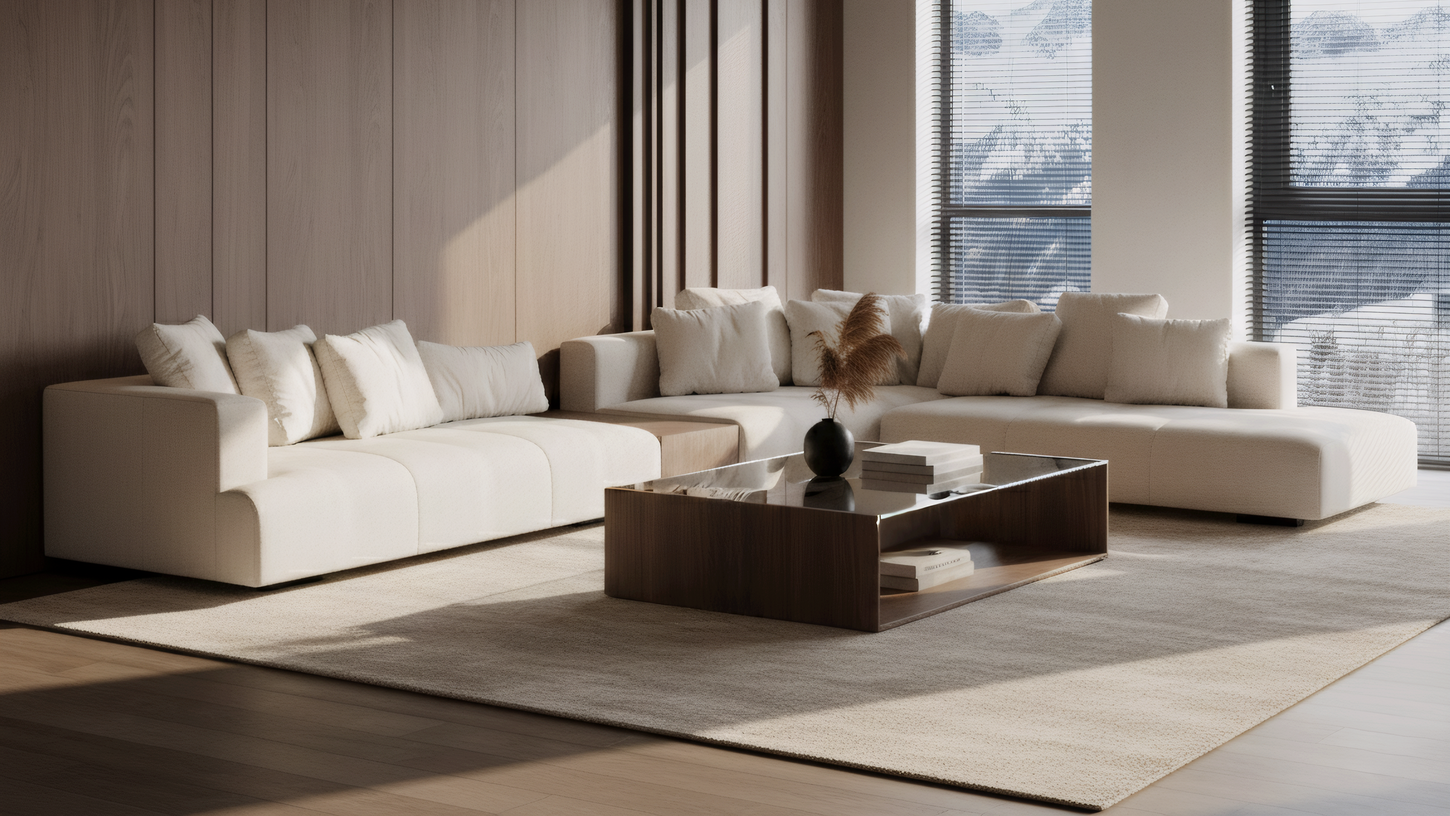 Side table crafted in matte American walnut or Natural oak with a travertine top.