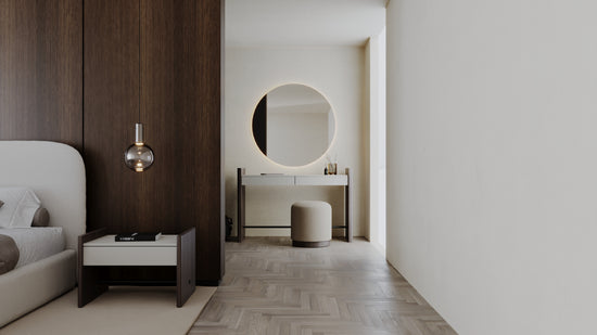 Wood and veneer are sensitive to light and can be affected by prolonged exposure to intense sunlight. During the first 6 to 8 weeks, it is important to keep surfaces free of objects to avoid permanent marks and circles while the product absorbs the surrounding light and its tone equalizes with existing furniture. In addition, it is important to avoid direct exposure to intense sunlight and sources of excessive heat, such as radiators or incandescent lamps, as this can cause discoloration and damage to the wood fibers. Avoid using abrasive or harsh chemical products that may damage the finish.